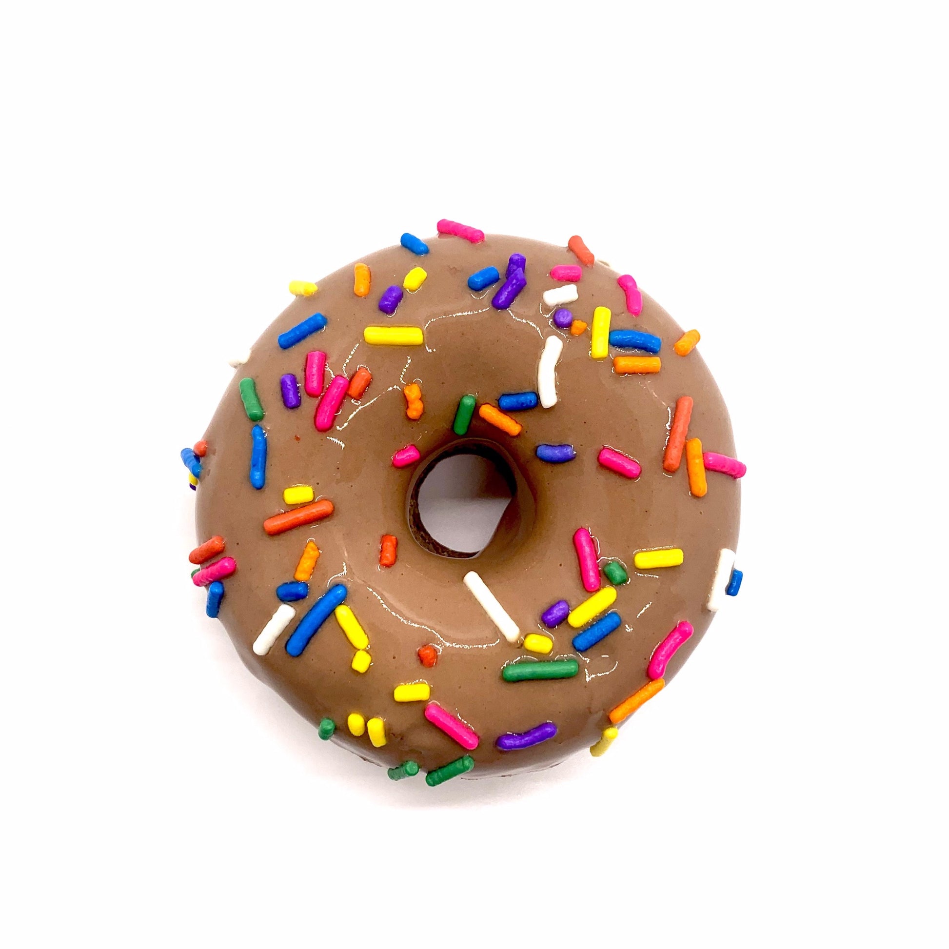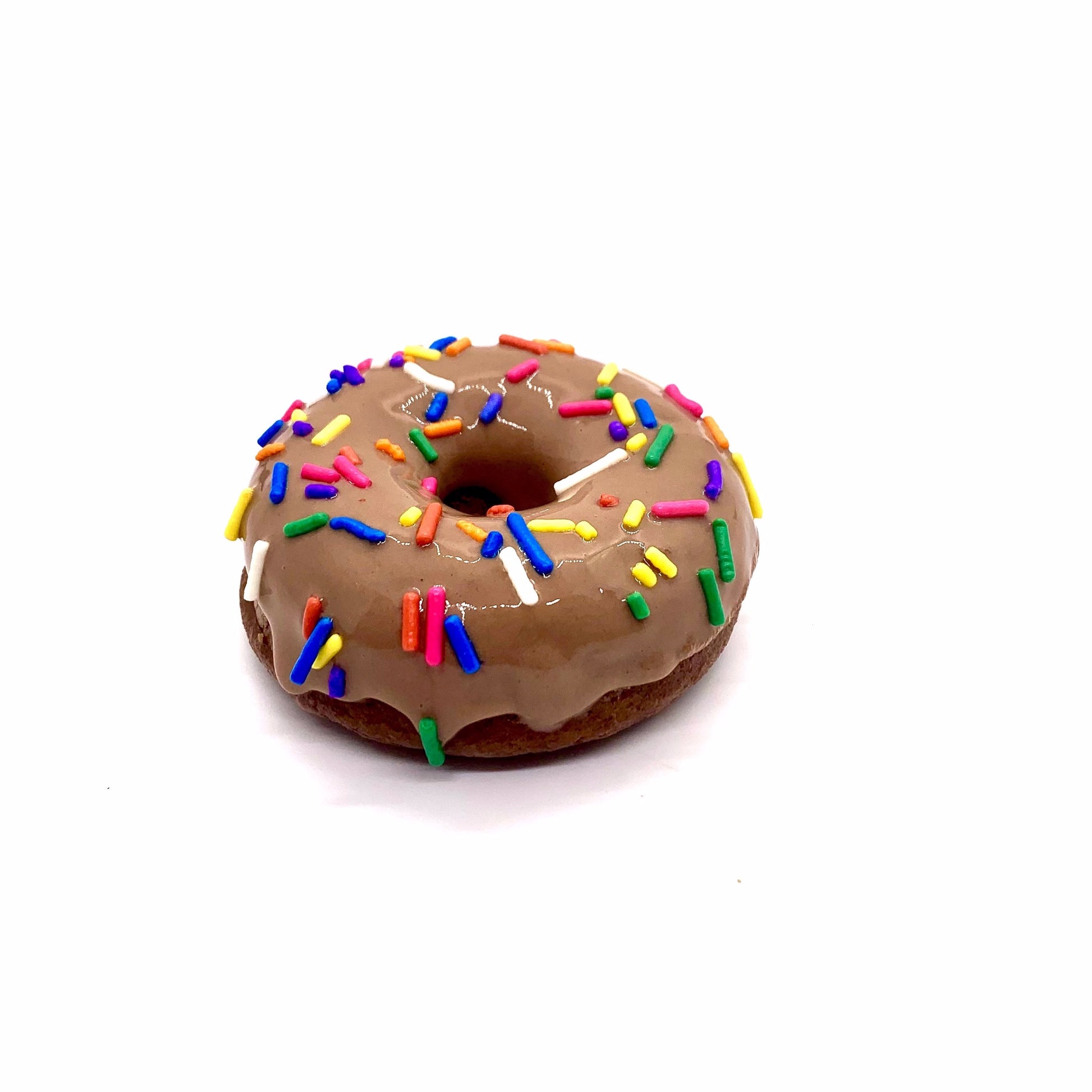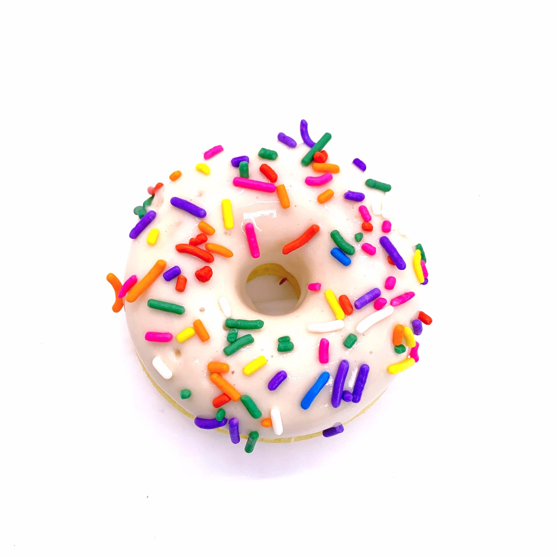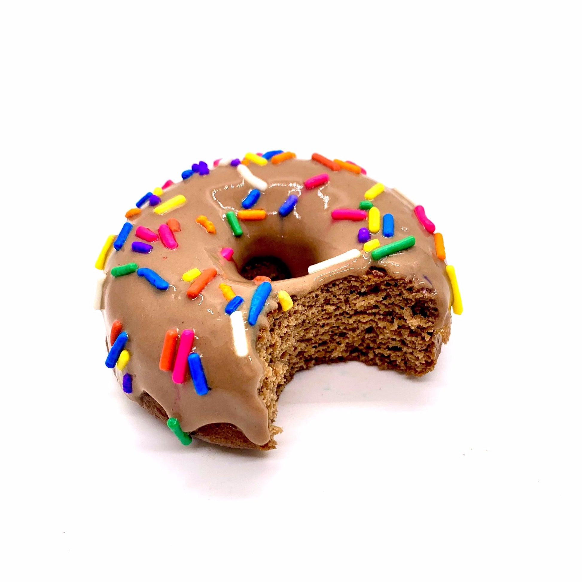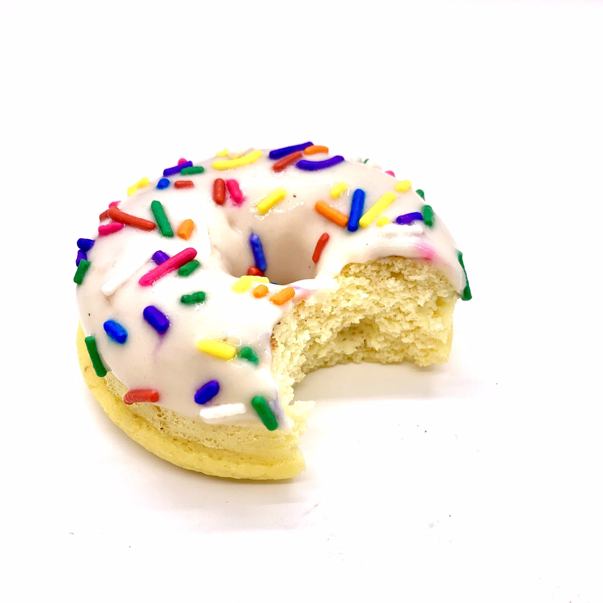 Greek yogurt, applesauce, egg, protein powder, egg white, coconut flour, baking powder, cream cheese. Topped with sprinkles.